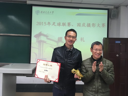 最后,足球联赛金靴奖获得者阮波代表获奖者发表获奖感言。他首先感谢学院和MPA教育中心能够为师生们提供丰富的平台,丰富大家的课余生活,促进了教工与学生之间的体育竞技交流。阮波老师同时代表学校对外合作与联络处校友办对交大校友工作做了简要介绍,并表示MPA同学无论是在读还是已毕业都是交大的一份子,学校和学院将是大家未来事业发展的坚强后盾。欢迎大家能够继续关心西南交大,为学校及学院的发展建言献策。