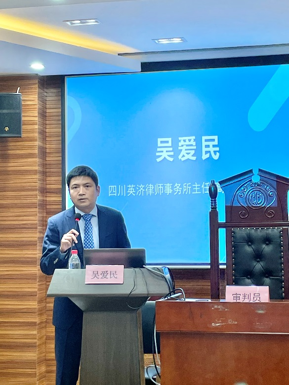 本次竞赛决赛特别邀请到了成都市中级人民法院未成年人及家事案件综合审判庭副庭长胡炀威法官、四川省英济律师事务所主任吴爱民律师作为校外专家评委,与我校富有法律实践经验的邓大鸣教授共同担任竞赛的评审工作。公共管理与政法学院副院长雷叙川副教授于百忙之中莅临竞赛现场并致辞,竞赛案例的设计者公共管理与政法学院法学系杨成良副教授也来到现场观摩参赛团队的模拟庭审,并对案例中所涉法律要点进行专业剖析。模拟法庭实验室张荣荣老师全程参与了竞赛的协调、组织和实施工作。随着参赛选手与工作人员的就位,决赛正式拉开序幕。