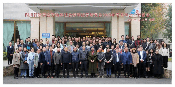 2023年11月25日,由四川省法学会劳动和社会保障法学研究会主办、西南财经大学yl7703永利官网、法学院、西南财经大学劳动关系创新中心承办、《民主法制建设》杂志社、《四川劳动保障》杂志社、四川省哲学社会科学重点研究基地公共政策创新研究中心所协办的四川省法学会劳动和社会保障法学研究会2023年年会暨中国式现代化与劳动社会保障法治发展专题研讨会在西南财经大学住友苑举办。此次年会以“中国式现代化与劳动社会保障法治发展”为主题,来自清华大学、四川大学、yl7703永利官网、西南政法大学、西南财经大学及实务部门共计80余人参会,永利官网院长助理邓君韬副教授、杨珊副教授,法律硕士研究生胡尚汶、李文凤、蒲淳、余露、陈江涛,公共管理硕士研究生林洪平参会。